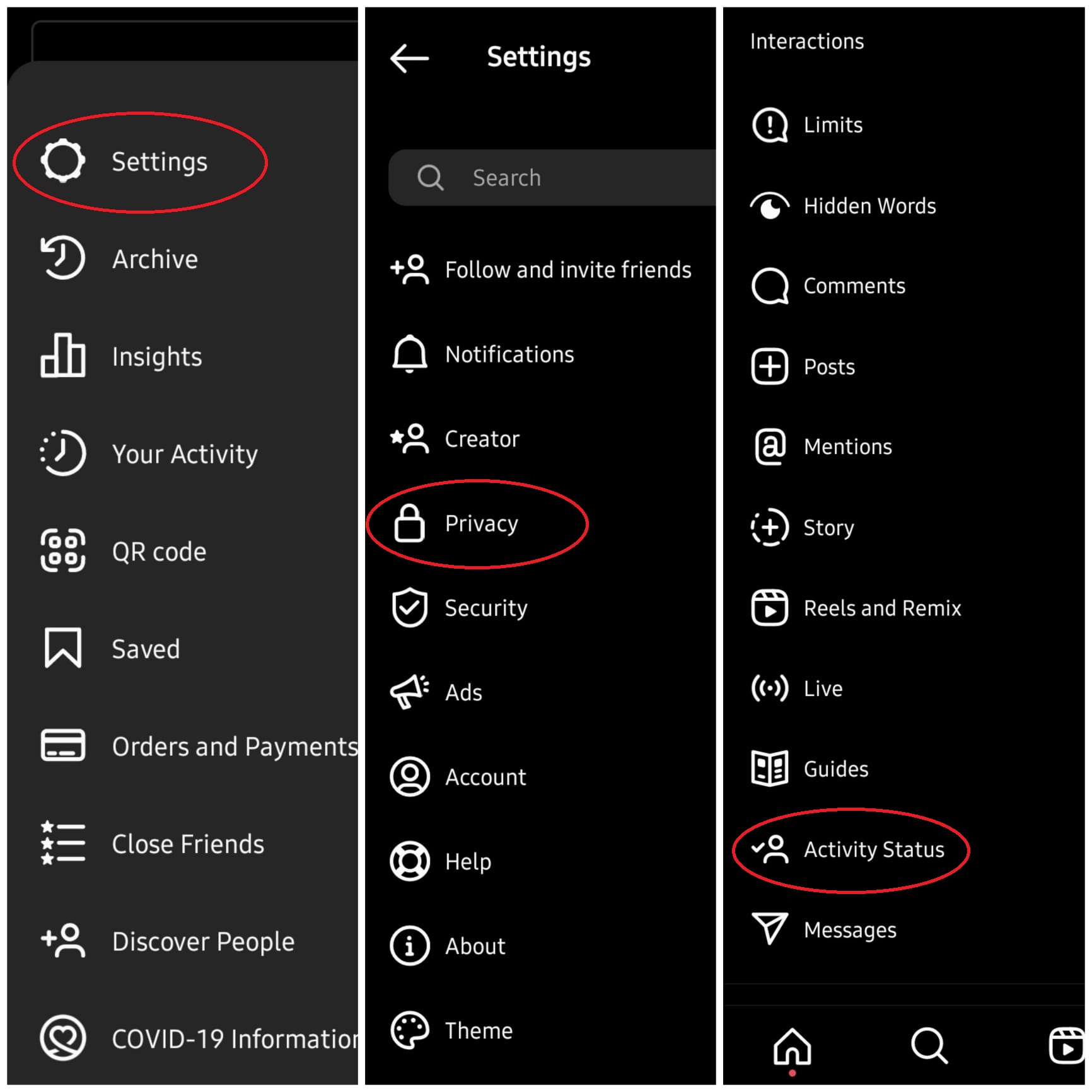 - Din noul meniu care se va deschide, dă click pe Activity Status și deselectează butonul din noua pagină.