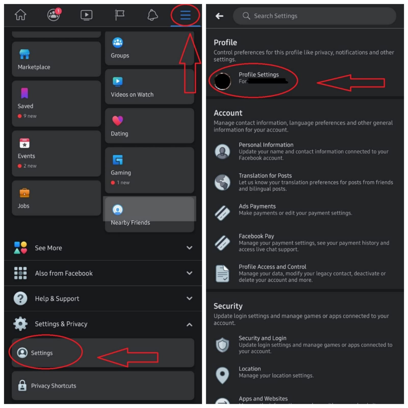 - Deschide meniul Settings, apoi alege Profile Settings.