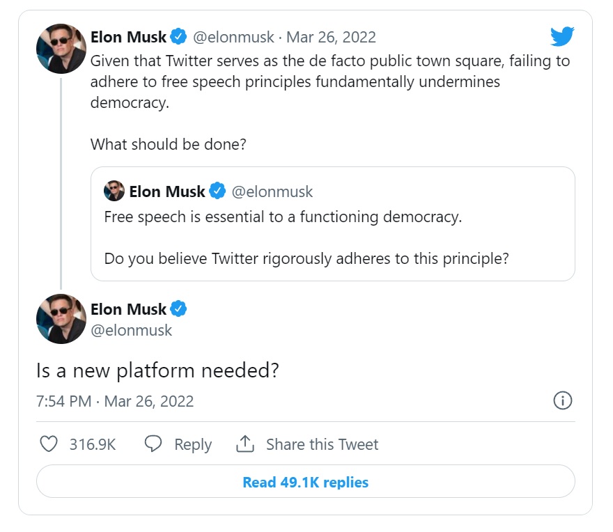 În următorul său tweet, Musk își întreba fanii dacă consideră necesară crearea unei noi platforme de social media.