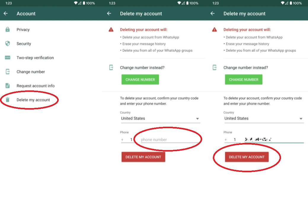 Poate părea ciudat să optezi de atâtea ori pentru aceeași comandă, dar WhatsApp vrea să se asigure de faptul că ești hotărât să renunți la contul tău și nu ai intrat în acel meniu din greșeală. Așa că nu-ți pierde răbdarea!